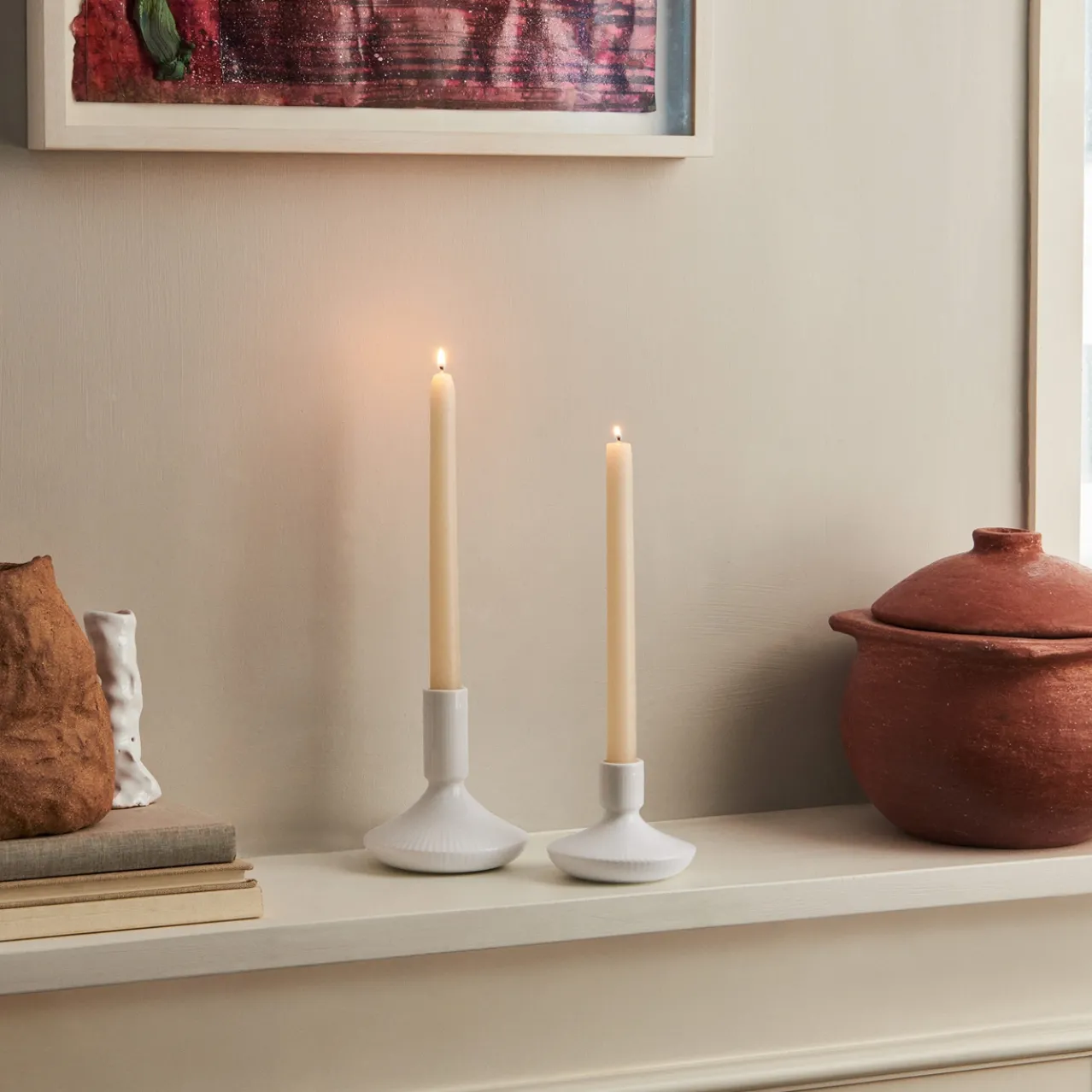 Light up your space and create a warm, inviting atmosphere with this timeless White Fluted Candle Holder from Royal Copenhagen. Combine it with candle holders from Blue Fluted Mega to add variation or with the 8 cm White Fluted Candle Holder for a clean and simple look.