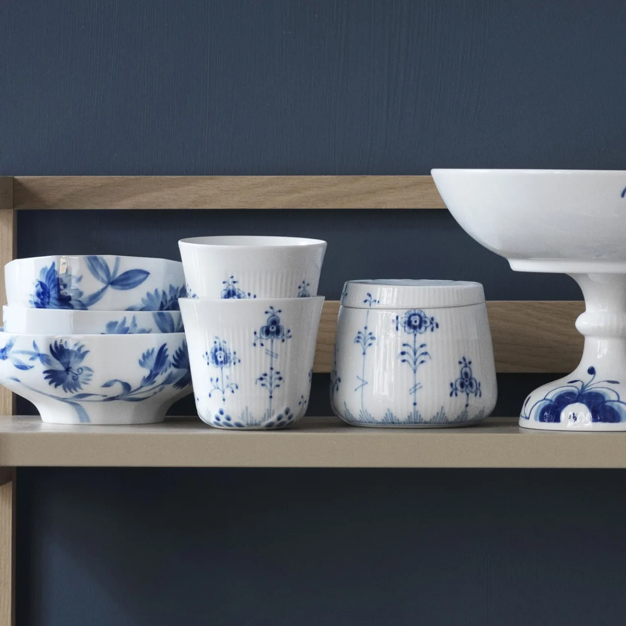 A versatile addition to any collection, this set of two Multicups are as beautiful as they are functional. The playful design is made up of a geometrical field of flutes adorned with hand painted floral elements and fish scale decorations. The Blue Elements Multicups have a capacity of 25 cl each and are perfect for a small serving of a hot beverage or for snacks. The Blue Elements collection blooms in elegant joyfulness with an inspiring combination of classic Royal Copenhagen design elements and classic, hand painted decorations that grow freely across porcelain surfaces. Like White Elements and Multicoloured Elements, the collection shines on its own or in a combination with classic collections from Royal Copenhagen in a playful style of contemporary beauty.