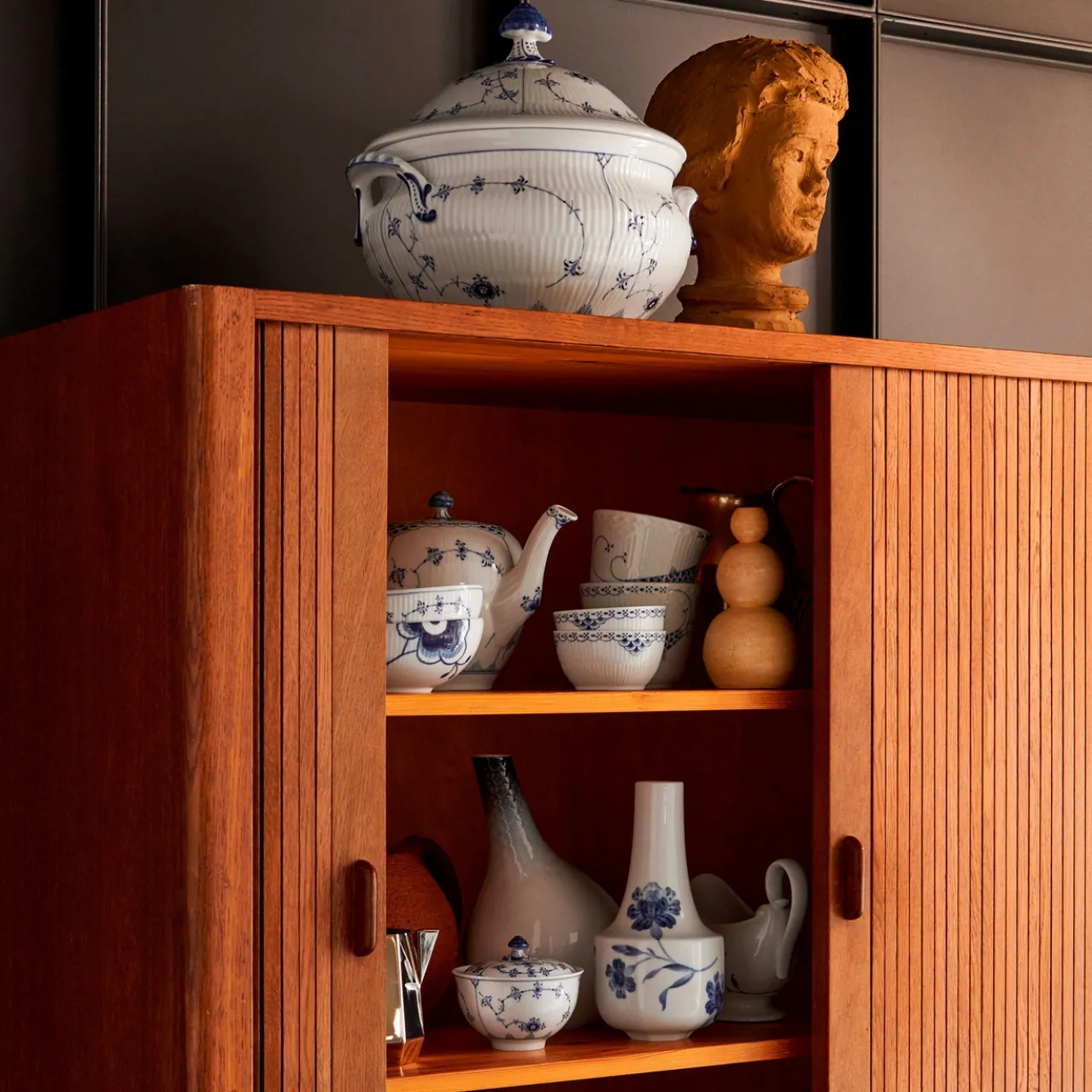 Proposed as The Royal Danish Porcelain Factory trademark in 1775 by Queen dowager Juliane Marie, every piece of Royal Copenhagen porcelain is instantly recognised by the three blue waves on its underside symbolising the Sound, the Great Belt and the Little Belt – the three main waterways of Denmark.