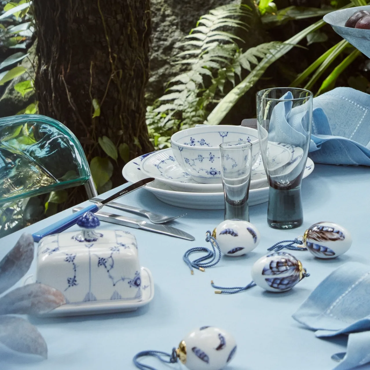 Your butter has never been presented more beautifully. This elegant butter dish in Blue Fluted Plain will elevate any table setting. The elegant, blue details frame the butter dish and the stylized, botanical element on the top is also a small handle. The saucer has a small edge to keep the butter and lid in place. Blue Fluted Plain captivates with its classic versatility and still today, the first ever Royal Copenhagen collection from 1775 remains forever in style. The graceful decoration of the collection emphasises the delicate form and craftsmanship of each piece. Use Blue Fluted Plain as the basis for a unique collection of Royal Copenhagen porcelain, combining the classic with the contemporary.