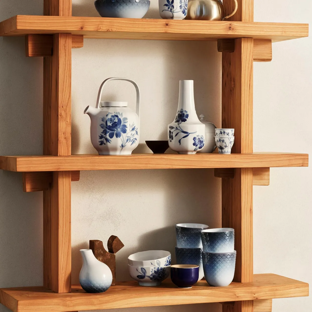 Proposed as The Royal Danish Porcelain Factory trademark in 1775 by Queen dowager Juliane Marie, every piece of Royal Copenhagen porcelain is instantly recognised by the three blue waves on its underside symbolising the Sound, the Great Belt and the Little Belt – the three main waterways of Denmark.