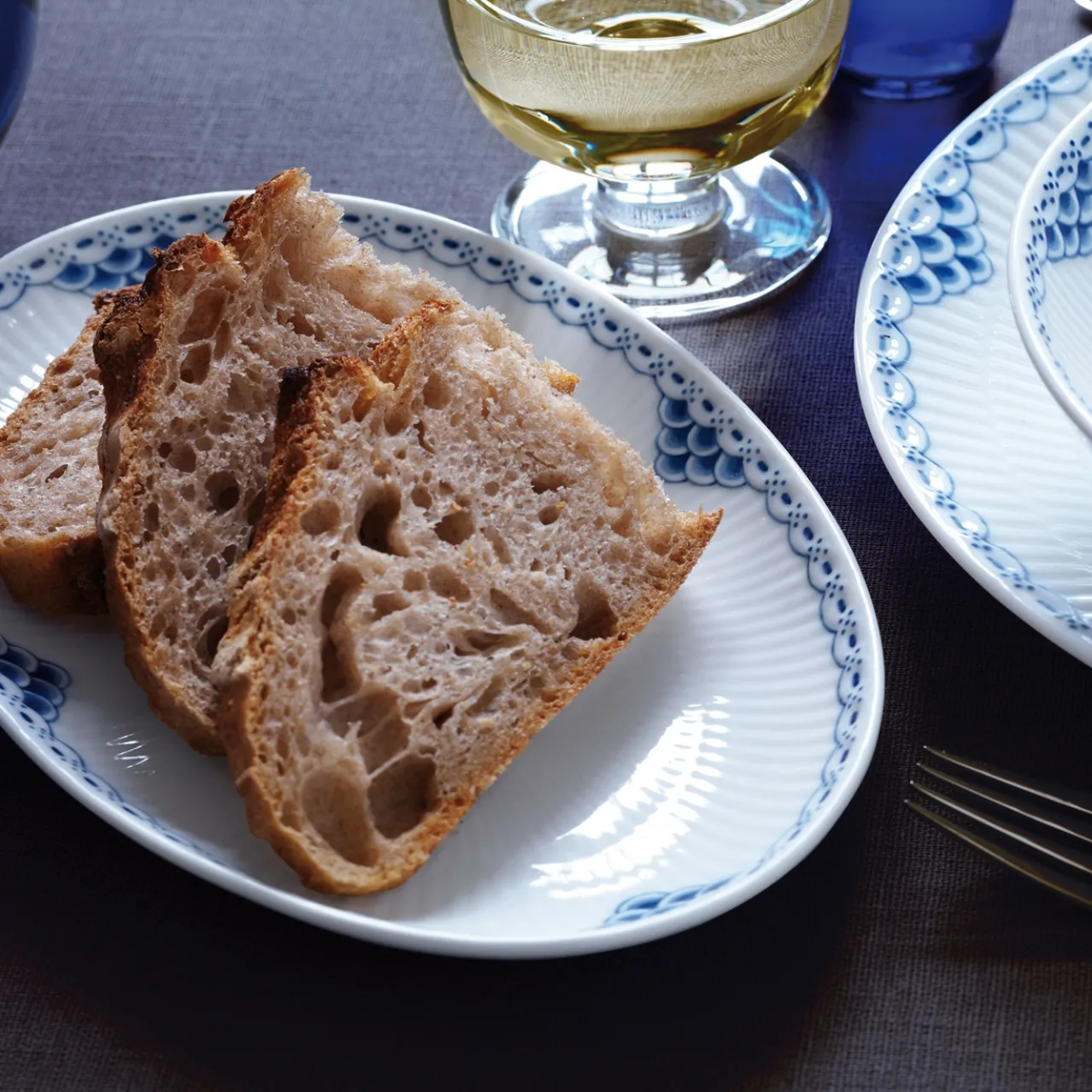 This 23.5 cm Princess Oval Dish is adorned with hand painted lace and delicate fish scale decorations providing a romantic style. The small dish makes for a classic table setting, whether being used as an assiette for bread or as a small serving dish.