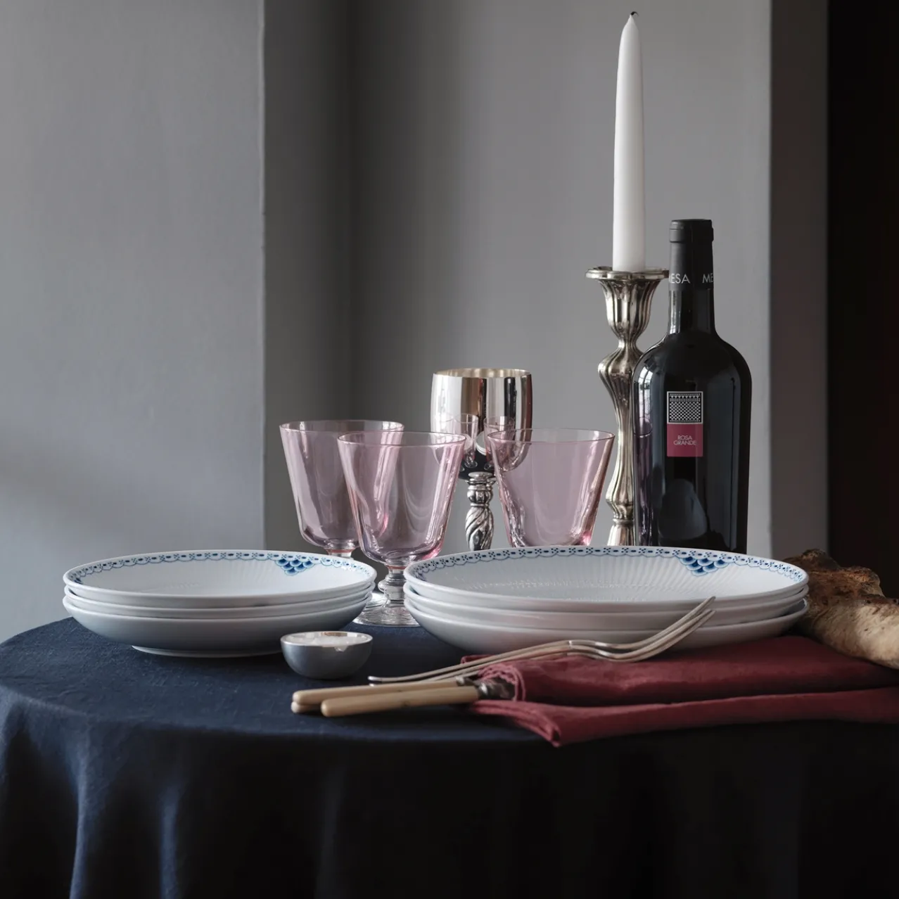 This plate has a slightly curved rim that adds an expression of elegance and lightness of the porcelain. The fluted rim is hand painted with the refined pattern of Princess, forming a romantic lace border that beautifully harmonises the contemporary shape of the plate. The 20 cm plate can be used as a lunch plate or a shallow bowl for side dishes and fruit.