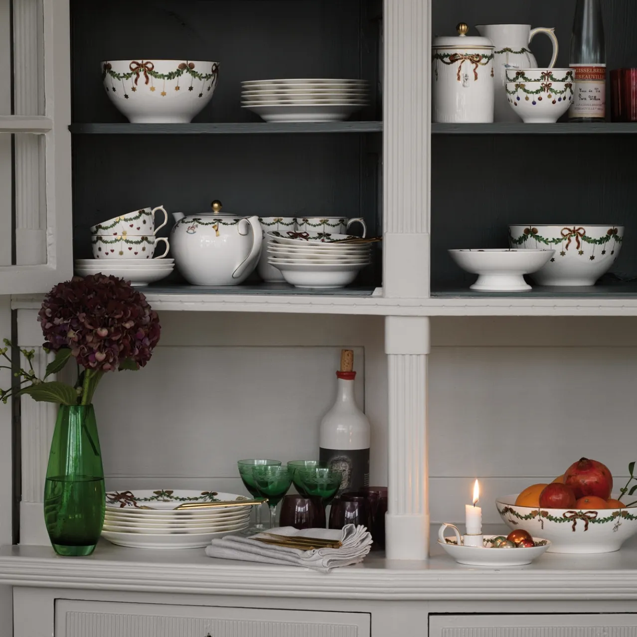 The beloved pattern of Star Fluted Christmas adorns this versatile bowl with delicate gold stars and red bows neatly tied around the evergreen spruce wreath. The 180 cl bowl is ideal as a serving bowl for biscuits and side dishes at the grand Christmas table. Nothing encapsulates the spirit of the holidays quite like gathering around the table for cozy moments of joy and togetherness. This is where the beloved Christmas dinner service from Royal Copenhagen has come to life and become a part of many holiday traditions. The festive wreaths of spruce bordering the plates, bowls and cups are adorned with silk ribbon bows and Christmas decorations, creating a rich and elegant service, which is the perfect background for all your joyful holiday meals.