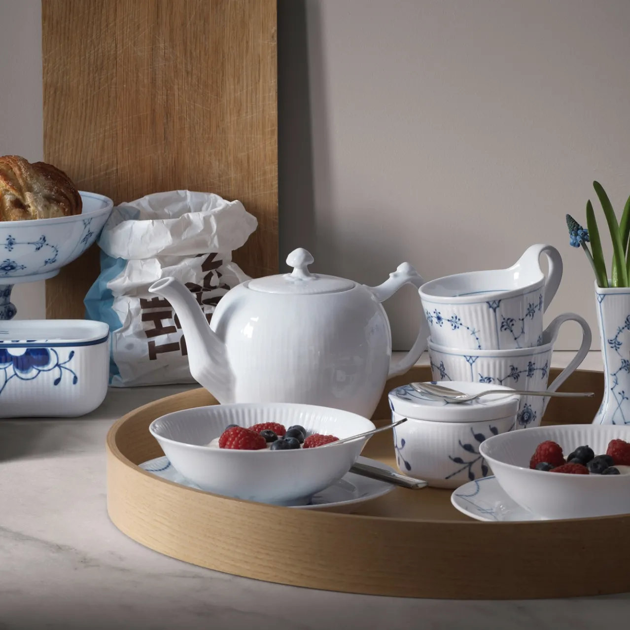 This set of two 35 cl White Fluted Bowls stands with a smooth, simplistic exterior, while tactile flutes adorn the inside of the bowls. Each bowl is ideal for small side dishes or as cereal bowls. Created from the base shape of the Blue Fluted Plain collection, White Fluted is minimalistic, unadorned and eternally classic. The pure whiteness of the simplistic collection makes each piece stand out it handmade elgance, emphasising the iconic flutes in the porcelain. Every piece of White Fluted is beautiful on its own and in combination with one or more of Royal Copenhagen’s hand painted dinner services.