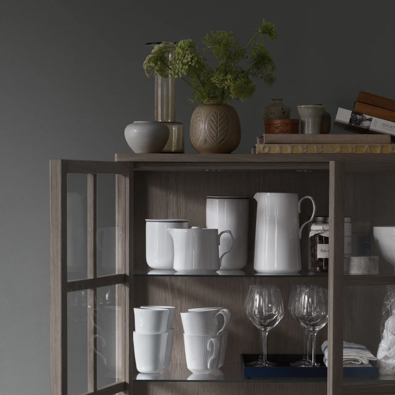 An old shape found in Royal Copenhagen’s archives was reinterpreted into a contemporary design to introduce this mug to the White Fluted collection. In this unpainted version, the mug radiates a classic simplicity that focuses on the tactile flutes. The size leaves plenty of room for your favourite hot beverages with or without foam or whipped cream. Created from the base shape of the Blue Fluted Plain collection, White Fluted is minimalistic, unadorned and eternally classic. The pure whiteness of the simplistic collection makes each piece stand out it handmade elgance, emphasising the iconic flutes in the porcelain. Every piece of White Fluted is beautiful on its own and in combination with one or more of Royal Copenhagen’s hand painted dinner services.
